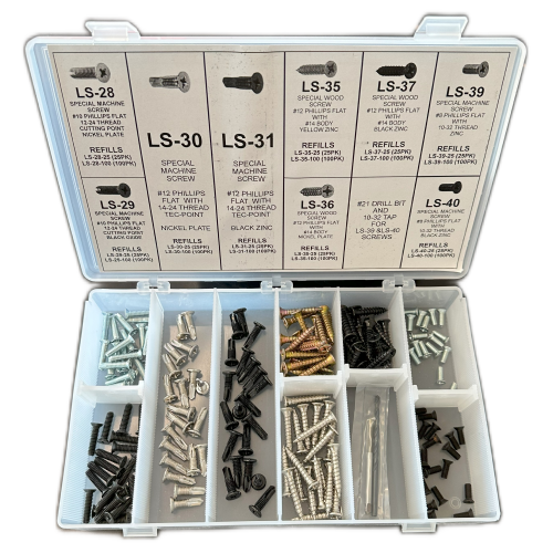 The Major LSA-3 is an assortment of specialized screws used to make quick repairs when replacing stripped out screws in wood and metal doors.